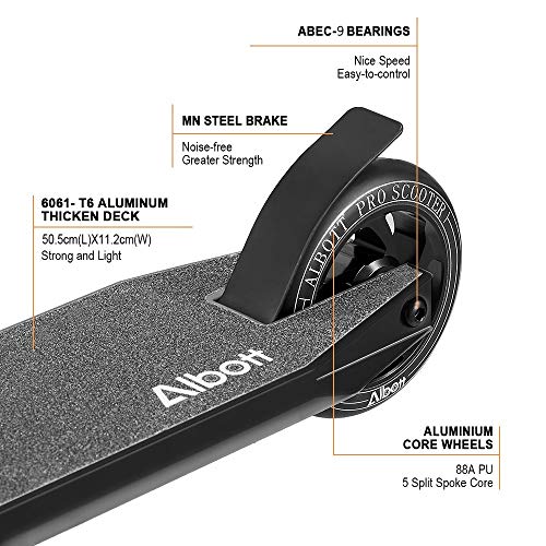 Specificaties: Albott Pro Stunt Scooter, kickstep, grappige step, met ABEC 9 kogellagers en 110 mm aluminium wielen, step, scooter voor…