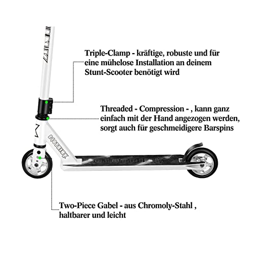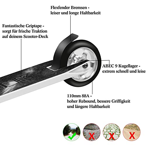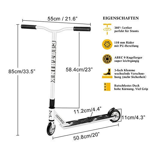 Specificaties: Clothink Stuntstep Robuuste Pro Stuntstep met 110mm ABEC 9 lagers, leuke scooter, kickscooter, truc scooter, freestyle…