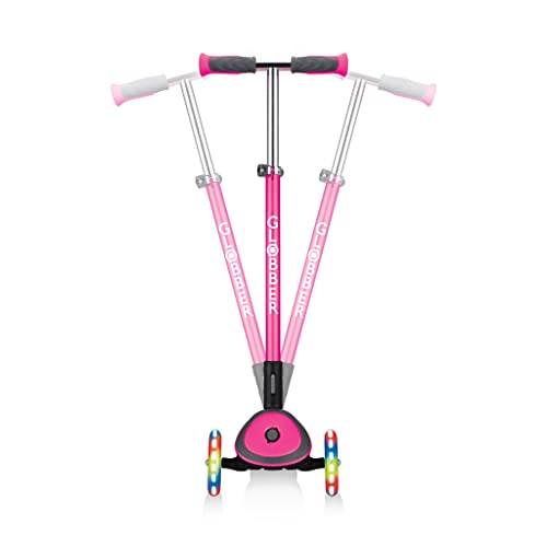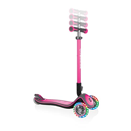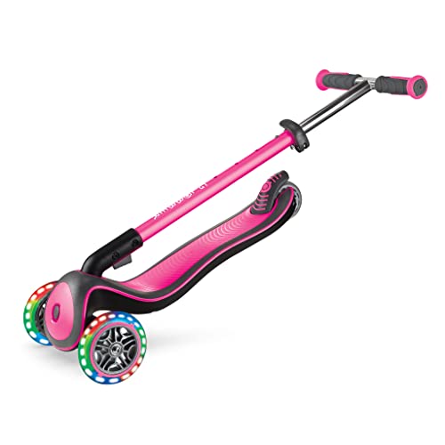 Globber Elite Deluxe Lights Kinderstep, 120/80 mm, ABEC 5, 3-wielen, in hoogte verstelbaar, led-wielen, roze